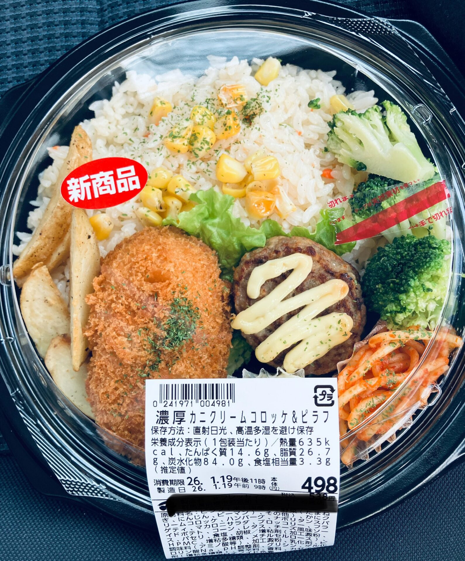今回の「濃厚カニクリームコロッケ&ピラフ」は、主食主菜が濃厚で副菜が淡泊な構成で食が進む弁当でした。