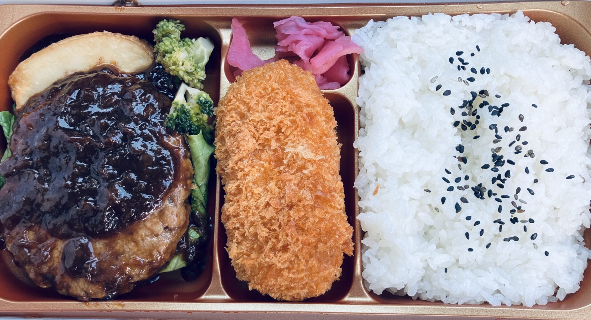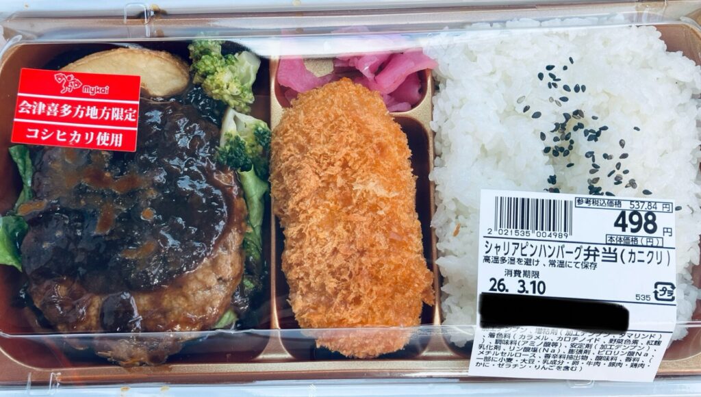 今回の「シャリアピンハンバーグ弁当」は、味と価格でアタリと評せる弁当でした。