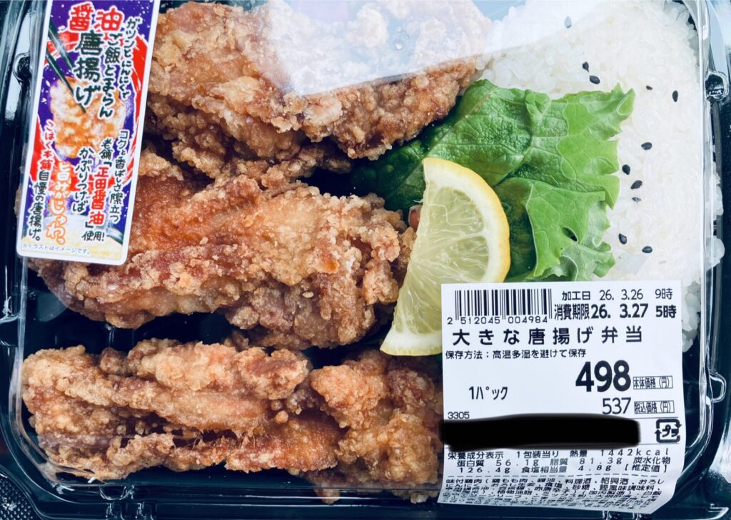 今回の「唐揚げ弁当」は、他に類を見ないボリュームという点でアタリと評せる弁当でした。