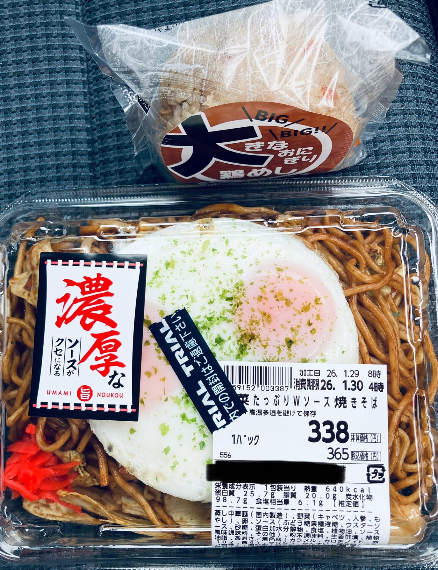 - 商品名 :野菜たっぷりWソース焼きそば&大きなにぎり とりめし